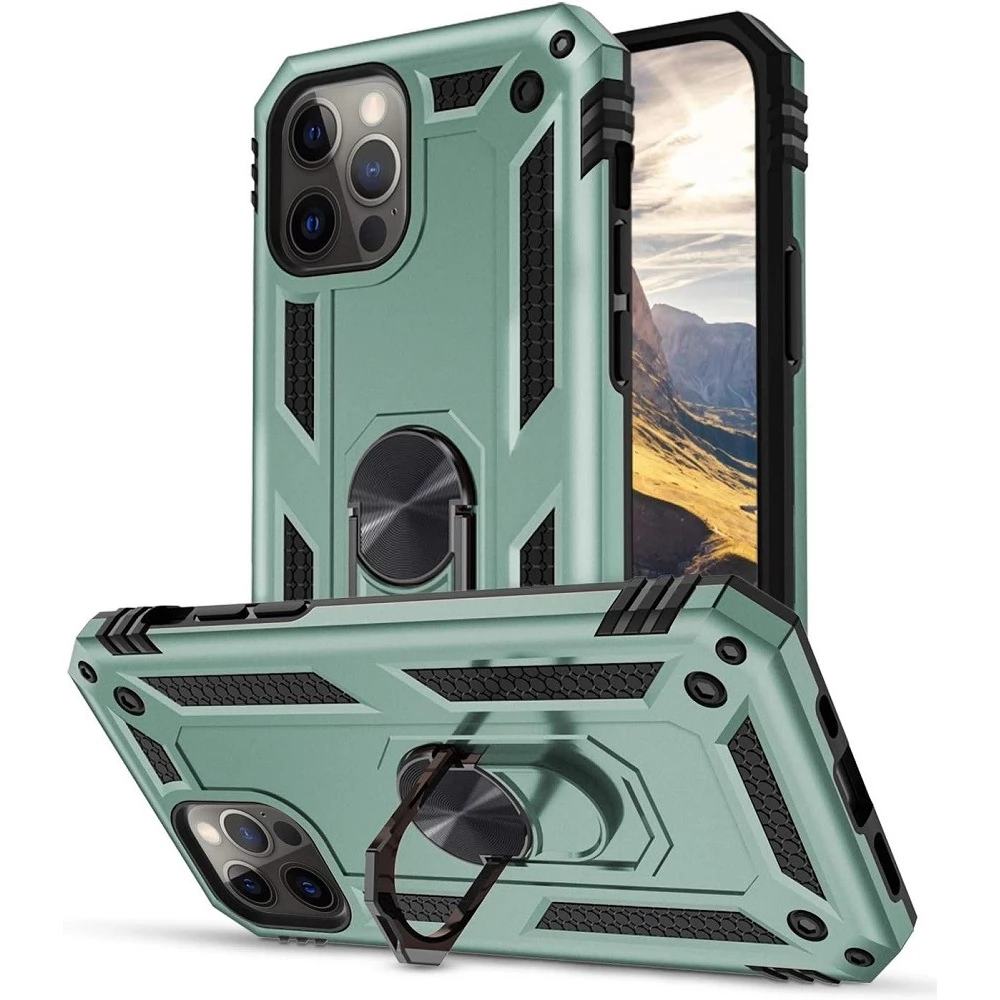 ZONE Defender iPhone 14 Pro Plastic back panel protection case moderately shockproof silicone internal phone case ring green