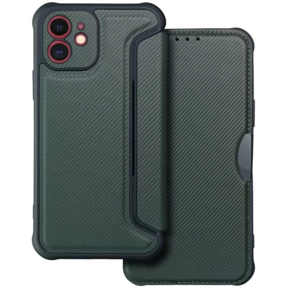 ZONE Razor Book to the side opening case leather look carbon pattern Samsung Galaxy A15 4G / A15 5G green